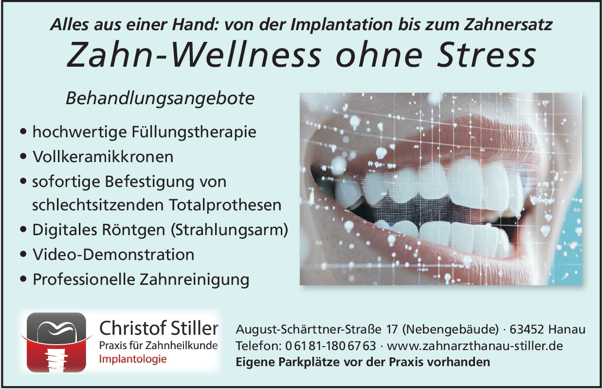 Seit über 22 Jahren bietet die Praxis Christof Stiller schonende, schnelle und kostengünstige Mini-Implantate, die Unter- und Oberkieferprothesen stabilisieren und Lebensqualität zurückgeben.