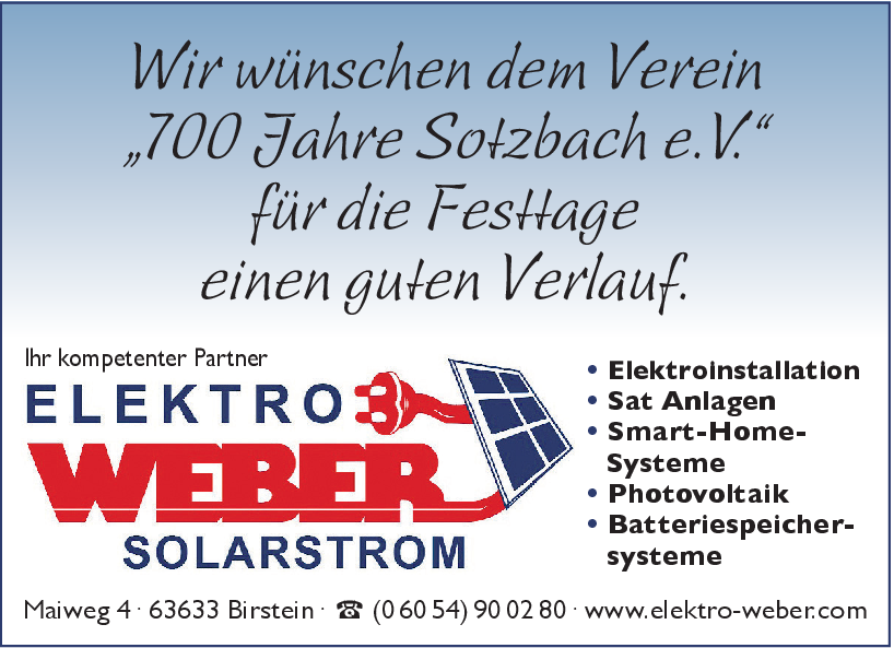 700 Jahre Sotzbach – ein Jubiläum, das die beiden Dörfer Obersotzbach und Untersotzbach gemeinsam groß feiern wollen. Vom 30. April bis zum 3. Mai wird an vier Festtagen ein umfassendes Programm geboten, das Historisches, Kulinarisches, Künstlerisches und Kurioses verbindet.